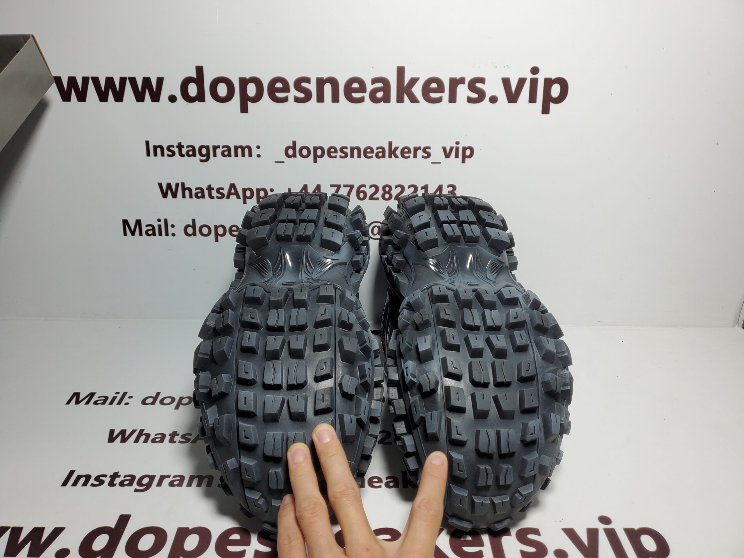 The Balenciaga Defender features an exaggerated tire tread sole, no contrasting or similar colors are used for the numbers on the toe, the numbers are the same color as the replica Balenciaga Defende, 5mm arch, embossed Balenciaga branding on the tongue, toe edge and rear Embossed Balenciaga logo and size on counter and back counter pulls. It shows the aristocratic temperament and is highly recognizable.