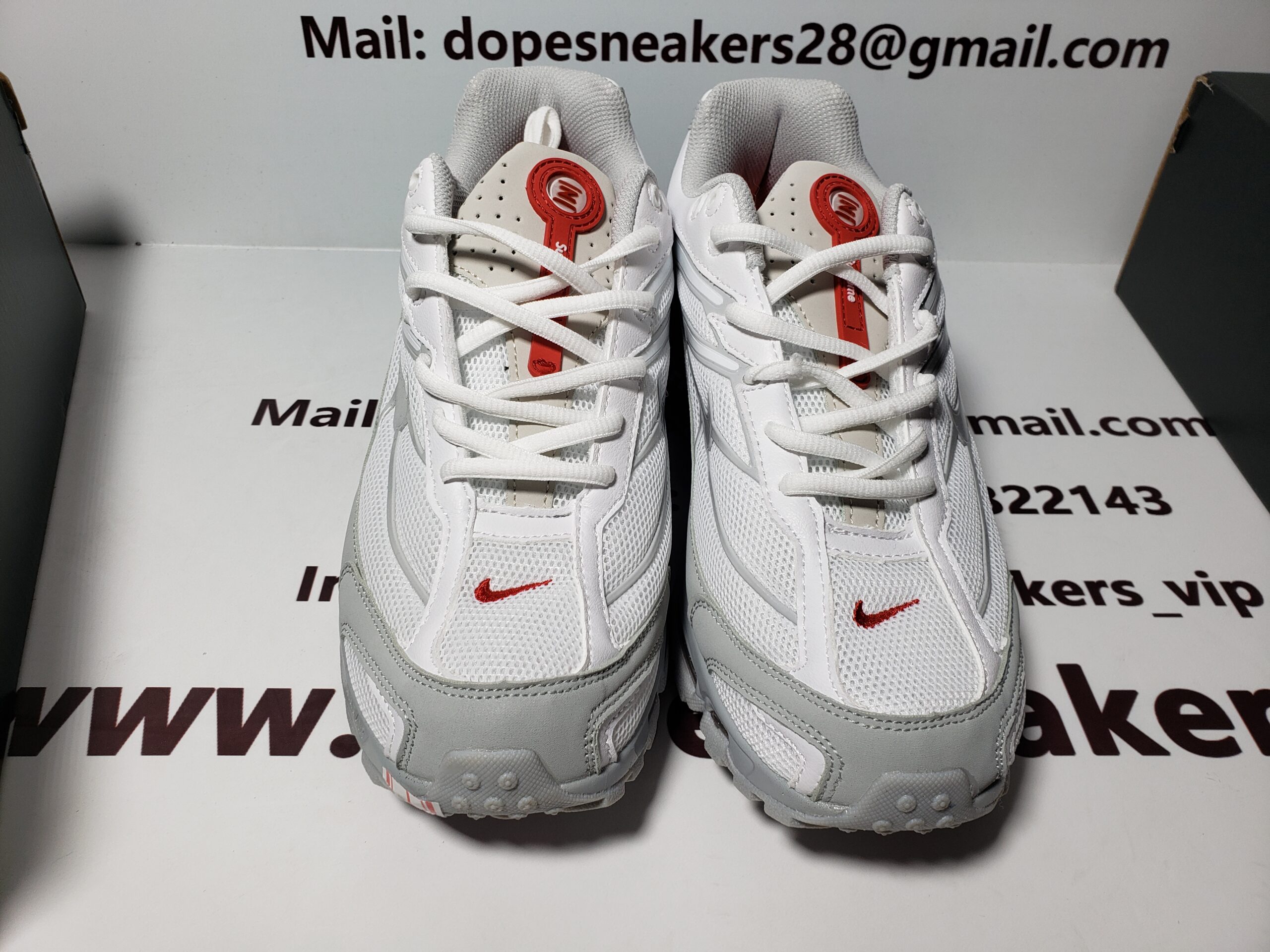 Supreme x Nike Shox Ride 2 white Reps were released by Supreme and Nike in 2020. There were 3 models released at that time. The color scheme of this shoe is composed of white/grey fog-flat platinum. The Shox cushioning air cushion is printed with Supreme, which is very good-looking. Supreme x Nike Shox Ride 2 white Reps are a good pair of running shoes. Buy dope sneakers’ Nike Shox Reps for running.